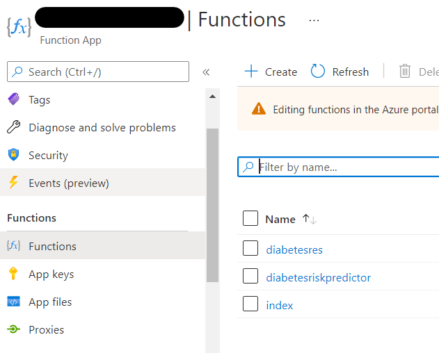 이것을 누르면 function app 내의 각종 function list 가 나오고 그중에 하나를 클릭한다.